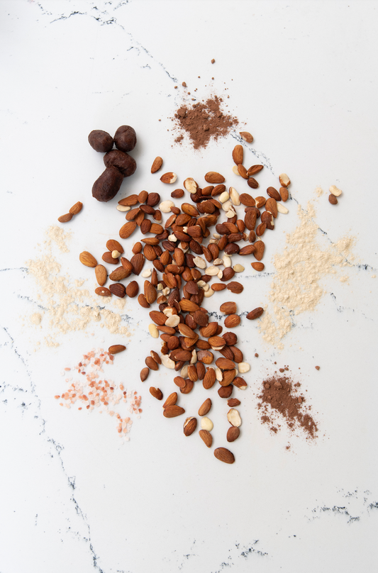 Water | Sprouted almonds | Date | Cacao | Maca | Sea salt