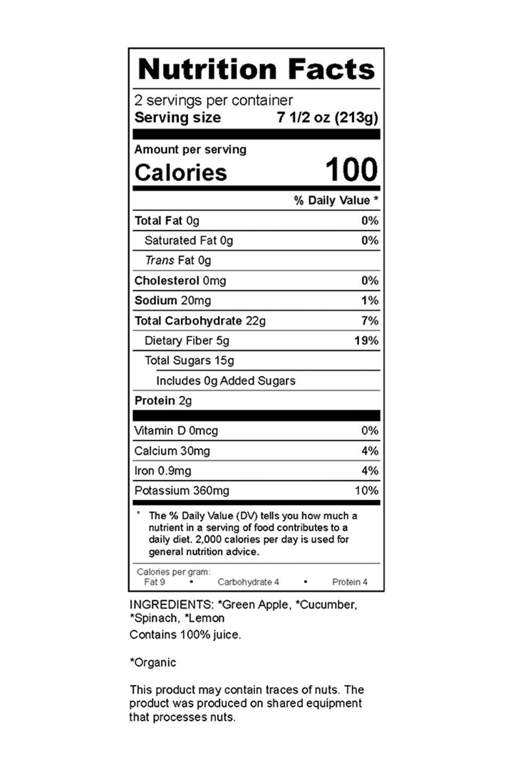 Bamboo's Spinach Apple is our sweetest, most citrus packed green! It's loaded with chlorophyll, which strengthens red blood cells, in turn, naturally boosting energy levels. A morning Spinach Apple increases our ability to tackle the day without a daily reliance on caffeine, and rids us of an after lunch productivity drop. This highly palatable green is more refreshing than a lemonade on a hot summer day and is a great juice for kids!